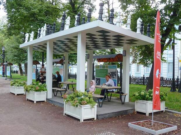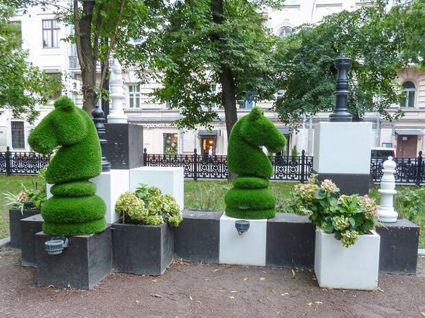 Все пространство бульвара было оформлено в шахматной стилистике. Попав сюда, посетители бульвара ощущали себя фигурой на клетчатой доске, соседствуя с другими героями шахматных сражений – величественными королями, быстрыми ладьями и стремящимися стать ферзями пешками...